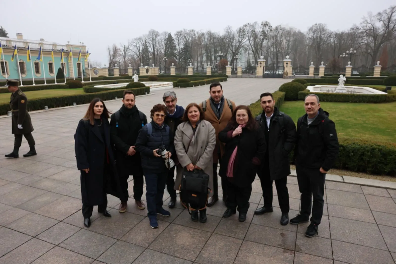 Μετά την κατάθεση στεφάνου στον Τοίχο των Ηρώων της Ουκρανίας ακολουθεί η επίσημη υποδοχή του ΠτΔ από τον Ζελένσκι στο Μαριίνσκι. Εκεί ξεκινά μια διαφορετική δημοσιογραφική κάλυψη της συνάντησης. Εξαιτίας των αυστηρών μέτρων ασφαλείας της χώρας, γίνεται κατάσχεση των κινητών όλων των δημοσιογράφων από την Προεδρική Φρουρά. Οι εντολές ήταν σαφείς, επαναλαμβανόμενες και ίσως φορτικές. Κανένα περιθώριο διαπραγμάτευσης ή ελαστικότητας.