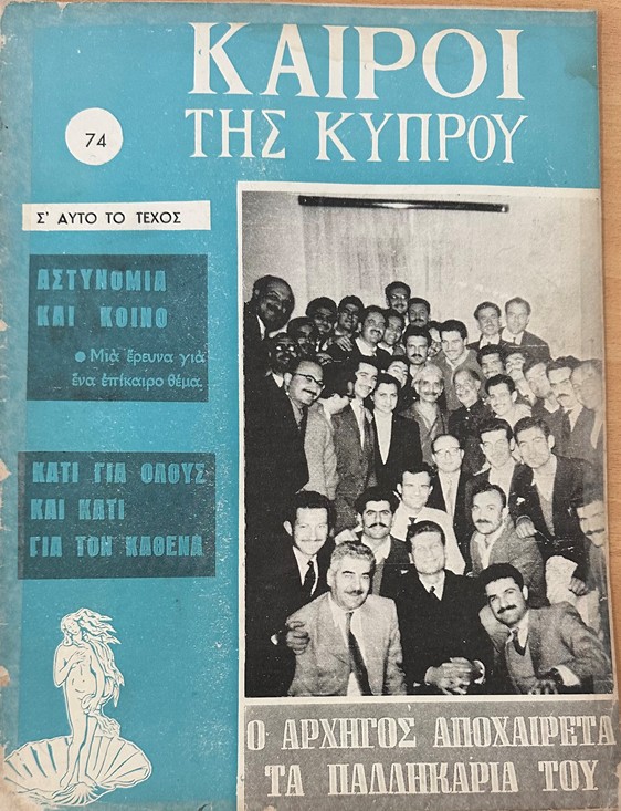 Στις σελίδες των «Καιρών της Κύπρου», ένα τεύχος που φέρει ακόμα τη μυρωδιά μιας άλλης εποχής, ξεδιπλώνεται μια κοινωνία σε μετάβαση. Από τη μια, η συλλογικότητα, άντρες μαζεμένοι, πρόσωπα αυστηρά αλλά και γεμάτα ζωή, μια κοινωνία που στηρίζεται στη συντροφικότητα και την ιεραρχία. Από την άλλη, μια διακριτική αλλά ισχυρή αναδυόμενη επιθυμία: η ατομική ανάδειξη.