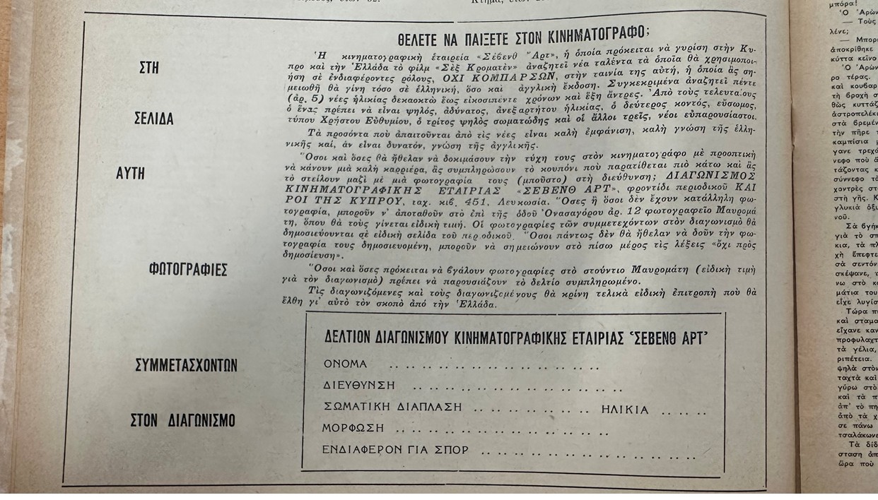 Υπάρχουν στιγμές που ο ερευνητής του παρελθόντος δεν αναζητά απλώς γεγονότα, αλλά σκιές. Σκιές ανθρώπων, βλέμματα που πάγωσαν στον χρόνο, μικρές αγγελίες που έκρυβαν μεγάλες φιλοδοξίες. Τέτοιες στιγμές αναδύονται μέσα από τις κιτρινισμένες σελίδες των περιοδικών της Κύπρου του περασμένου αιώνα, εκεί όπου η καθημερινότητα συναντούσε το όνειρο.