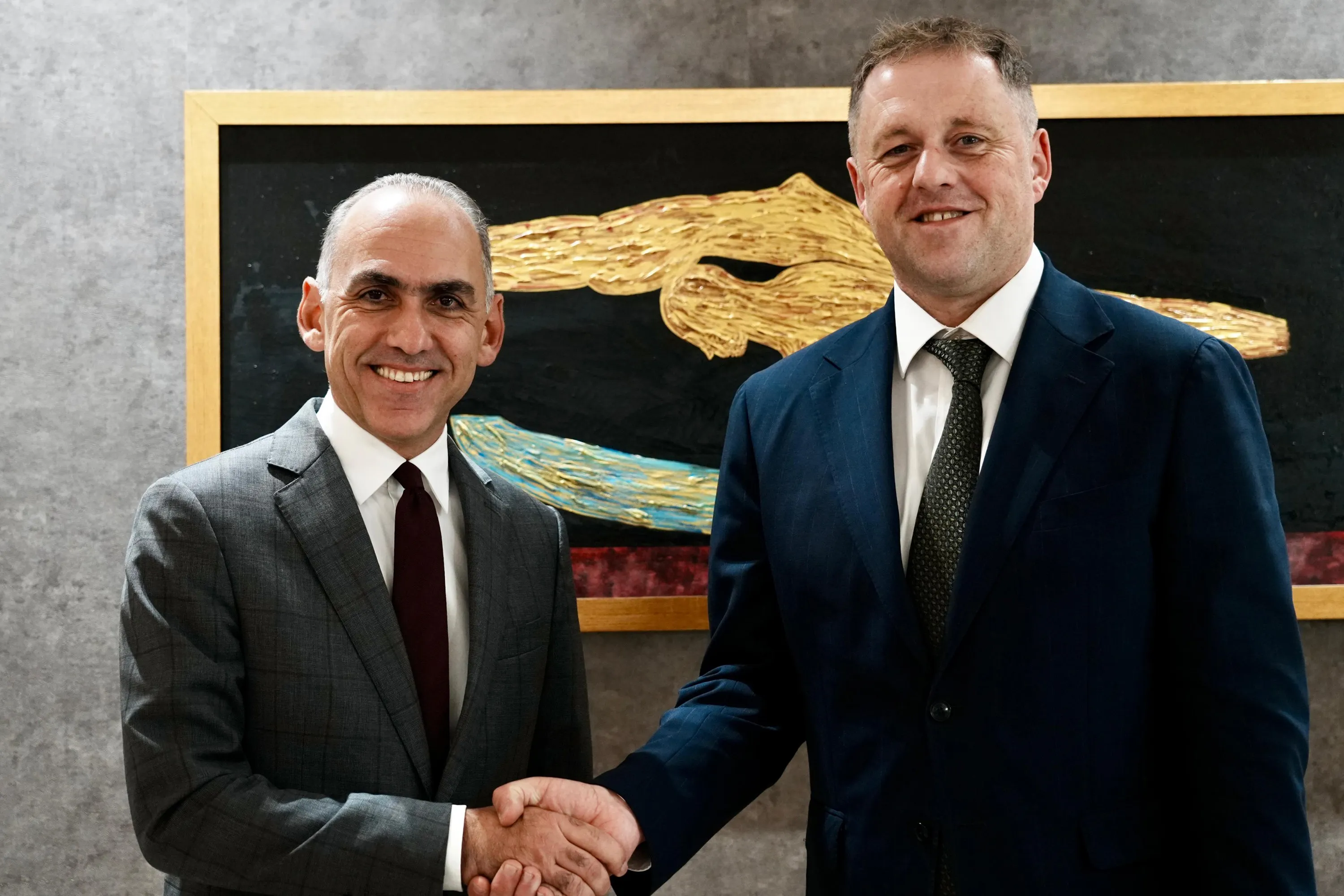 O κ. Γεωργιάδης είχε σήμερα Τρίτη συνάντηση με τον Υφυπουργό Ευρωπαϊκών Υποθέσεων και Άμυνας της Ιρλανδίας, Thomas Byrne, στο πλαίσιο επίσκεψης που πραγματοποιεί στην Κύπρο ενόψει της επικείμενης Κυπριακής Προεδρίας του Συμβουλίου της Ευρωπαϊκής Ένωσης (ΕΕ), κατά το πρώτο εξάμηνο του 2026, αναφέρεται.