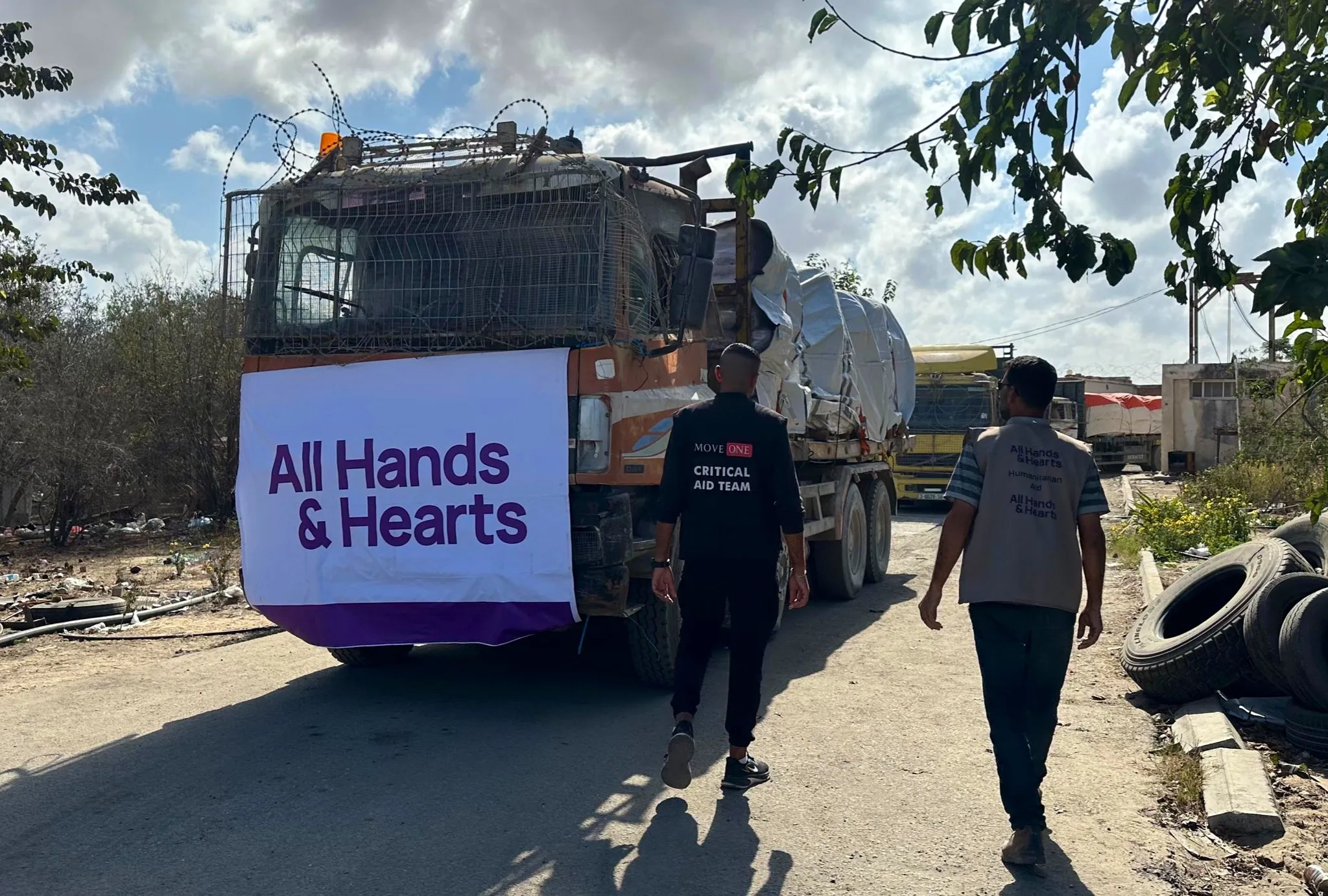 #Shelter material sent via the #Amalthea Plan maritime corridor arriving in Gaza following close coordination with our partners @UNOPS @AllHandsHearts.