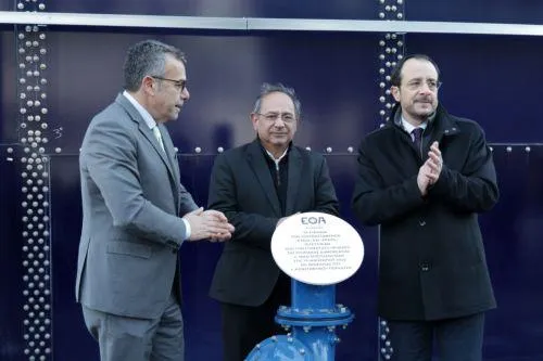 Τα εγκαίνια του έργου έγιναν από τον Πρόεδρο Χριστοδουλίδη, τον κ. Γιωρκάτζη και τον Έπαρχο Λευκωσίας Ανδρέα Χατζηπάκκο, με την αποκάλυψη επιγραφής μπροστά από τις υδατοδεξαμενές. Προηγήθηκε τελετή αγιασμού από τον Μητροπολίτη Καρπασίας Χριστοφόρο.