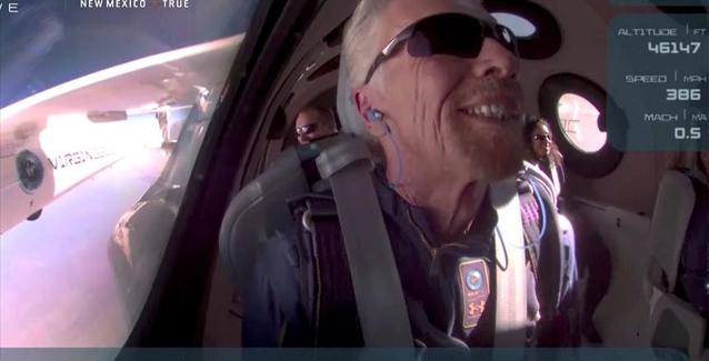Η πτήση του Ρίτσαρντ Μπράνσον μεταδόθηκε ζωντανά. Ο Βρετανός επιχειρηματίας μαζί με άλλα πέντε άτομα απογειώθηκαν με ένα διαστημικό σκάφος της Virgin Galactic (που ομοιάζει με τριπλό αεροπλάνο) από τη βάση Spaceport America στην αμερικανική πολιτεία του Νέου Μεξικού.