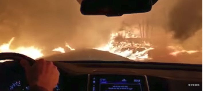 Το εν λόγω βίντεο τράβηξε οικογένεια, στην προσπάθεια της να διαφύγει από την πύρινη κόλαση, στην περιοχή Paradise της Καλιφόρνια.