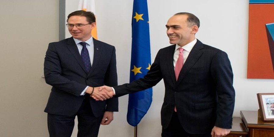 O Αντιπρόεδρος της Ευρωπαϊκής Επιτροπής και ο Υπουργός Οικονομικών προέβησαν σε δηλώσεις μετά από τη συνάντηση τους στο Υπουργείο Οικονομικών, στο πλαίσιο της επίσκεψης του κ. Katainen στο νησί.