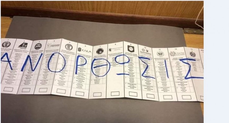 Το ψηφοδέλτιο που κάνει τον γύρο του διαδικτύου, αντί για σταυρό προτίμησης ή κάτι άλλο, γράφει ολογράφως «ΑΝΟΡΘΩΣΙΣ».