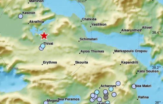 Συγκεκριμένα, ο σεισμός σημειώθηκε στις 16:54 και το επίκεντρό του εντοπίστηκε 6 χιλιόμετρα βόρεια της Θήβας και 56 χιλιόμετρα βορειοδυτικά της Αθήνας.