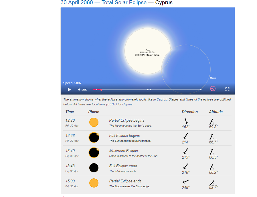Στην Κύπρο δεν ήταν ορατή, ωστόσο, κάποιοι θα έχουν την ευκαιρία να δουν την επόμενη ολική έκλειψη από την χώρα μας.