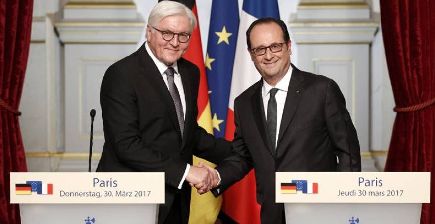 Ο πρόεδρος της Γαλλίας Φρανσουά Ολάντ και ο πρόεδρος της Γερμανίας Φρανκ-Βάλτερ Σταϊνμάιερ επισήμαναν σήμερα πως είναι ανάγκη οι δύο χώρες «να προχωρήσουν χέρι με χέρι» για να οικοδομήσουν «την Ευρώπη του μέλλοντος» μετά το Brexit και να αγωνιστούν από κοινού εναντίον του εθνικισμού και του εξτρεμισμού.