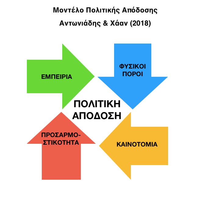 Το Μοντέλο Πολιτικής Απόδοσης αναλύει, εφαρμόζει και μετρά στην πράξη την «Εμπειρία», τους «Φυσικούς Πόρους», την «Ικανότητα Καινοτομίας» και την «Ικανότητα Προσαρμοστικότητας» ενός πολιτικού, στοιχεία, τα οποία είναι άμεσα συνυφασμένα με την πολιτική του «Απόδοση» (Σχεδιάγραμμα). Με τον Πολίτη να είναι ο πλέον αρμόδιος να μετρήσει την απόδοση αυτή μέσω συγκεκριμένων κριτηρίων, που αποτελούν αναπόσπαστο μέρος της θεωρίας-μοντέλου.