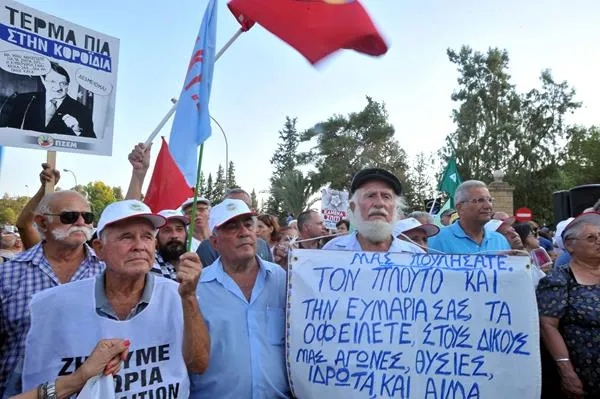 Είπε ο Γενικός Γραμματέας της ΔΕΟΚ Διομήδης Διομήδους, προς τους διαδηλωτές: «Στέλνουμε μήνυμα από αυτήν τη συγκέντρωση και σε κάθε άλλη συνδικαλιστική οργάνωση: αφήστε τα γραφεία, συμπεριφερθείτε επιτέλους ως πραγματικές ηγεσίες της εργατικής τάξης, των κοινωνικών ομάδων, ελάτε μαζί και οι ηγεσίες και οι υπόλοιποι συμπατριώτες και συμπατριώτισσές μας. Έχουμε συναντήσει τον Πρόεδρο της Δημοκρατίας και για άλλη μια φορά, από τα θα στα θα και μετά τα θα και πάλι θα, ατέλειωτα τα θα».