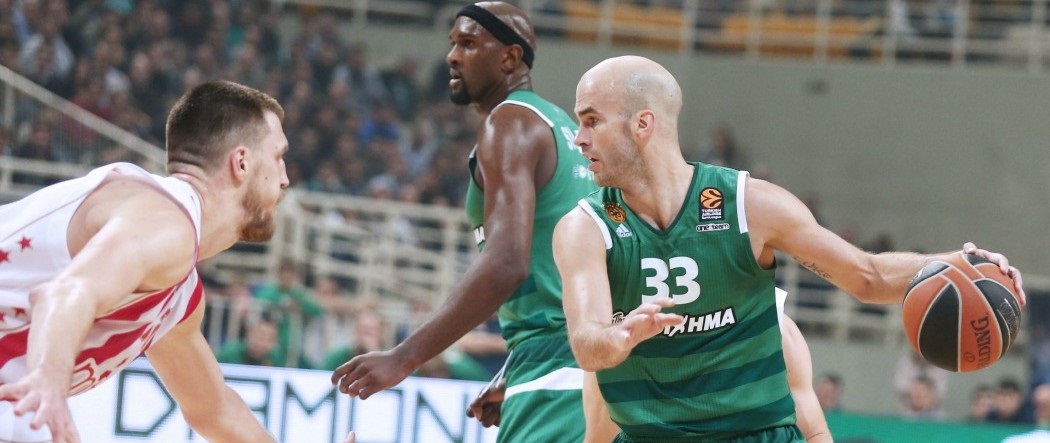 Με τον Χαραλαμπόπουλο στην αρχική πεντάδα, αντί του Τζεντίλε, και τους Σίνγλετον, Μπουρούση να καλύπτουν τις θέσεις "4" και "5", μπήκε στο παρκέ ο Παναθηναϊκός ή καλύτερα το... φάντασμα του Παναθηναϊκού. Οι «πράσινοι» έμειναν... θεατές στο μονόλογο της Παρτιζάν, η οποία με έλεγχο των ριμπάουντ (12 με 7 του Κούζμιτς), κυρίως των επιθετικών (5 έναντι 0 του Παναθηναϊκού), και εξαιρετική άμυνα, κράτησε άποντο το «τριφύλλι» στα 6.5 πρώτα λεπτά της αναμέτρησης, όταν και προηγήθηκε με 16-0(!). Μοναδικό μελανό σημείο στο παιχνίδι των Σέρβων τα 0/7 τρίποντα. Ωστόσο, από τη στιγμή που ο Πασκουάλ «τράβηξε» στον πάγκο τον εκτός κλίματος Καλάθη (0π., 3 λάθη) ο Παναθηναϊκός έδειξε σημάδια ανάκαμψης. Με τον Τζέιμς να δίνει το σύνθημα από τα 6.75 οι «πράσινοι» ευστόχησαν σε τέσσερα διαδοχικά τρίποντα (1 ο Τζέιμς, 2 ο Γκάμπριελ, 1 ο Ρίβερς) και με επιμέρους σκορ 2-14 μείωσαν στο 8΄ σε 18-14, για να μπουν στη δεύτερη περίοδο στο -6 (20-14). Με τον Γκάμπριελ να δίνει ρεσιτάλ κοντά στα καλάθια (μάζεψε 3 επιθετικά στο β' δεκ.) ο Παναθηναϊκός πλησίασε ακόμη και στο -3 (20-17 στο 11΄), αλλά με τους Σέρβους να βρίσκουν στόχο από τα 6.75 (2 κολλητά) η διαφορά ξέφυγε και πάλι (33-25 στο 14΄). Μπουρούσης και Τζέιμς απάντησαν από την ίδια θέση για το 35-33 στο 18΄, αλλά τα... φθηνά λάθη στην «πράσινη» άμυνα δεν επέτρεψαν στον Παναθηναϊκό, που δεν πήγε ούτε μία φορά στη γραμμή των ελευθέρων βολών, την υπέρβαση και πήρε το δρόμος προς τα αποδυτήρια στο -6 (39-33).