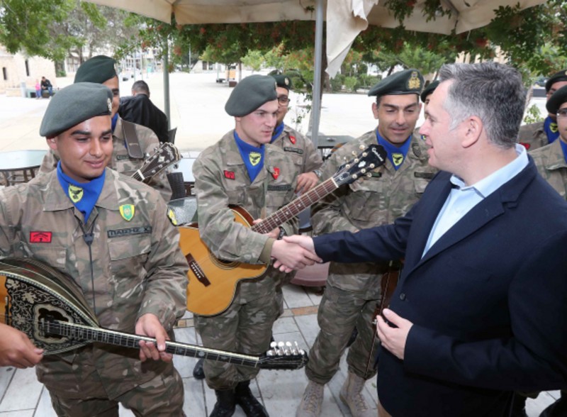 Συγκεκριμένα στη διάρκεια της επίσκεψής του στην Γεροσκήπου, εθνοφρουροί μας έψαλαν στον Νικόλα Παπαδόπουλο τα Χριστουγεννιάτικα κάλαντα, με κιθάρες, μπουζούκια και βιολιά.