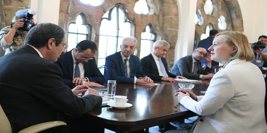 Σε δηλώσεις του στους δημοσιογράφους, στο Προεδρικό Μέγαρο, ο Εκπρόσωπος είπε ότι «ο Πρόεδρος της Δημοκρατίας είχε συνάντηση με την Ειδική Αντιπρόσωπο του ΓΓ του ΟΗΕ στην Κύπρο κα Ελιζαμπεθ Σπέχαρ.
