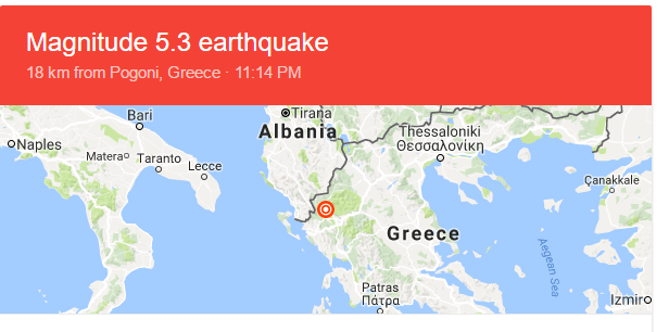 Ισχυρός σεισμός σημειώθηκε στις 23.14, 16 περίπου χιλιόμετρα βορειοδυτικά των Ιωαννίνων. Ο σεισμός ήταν 5,3 της κλίμακας ρίχτερ. Σύμφωνα με τις πρώτες αναφορές ακολούθησαν και μετασεισμοί.