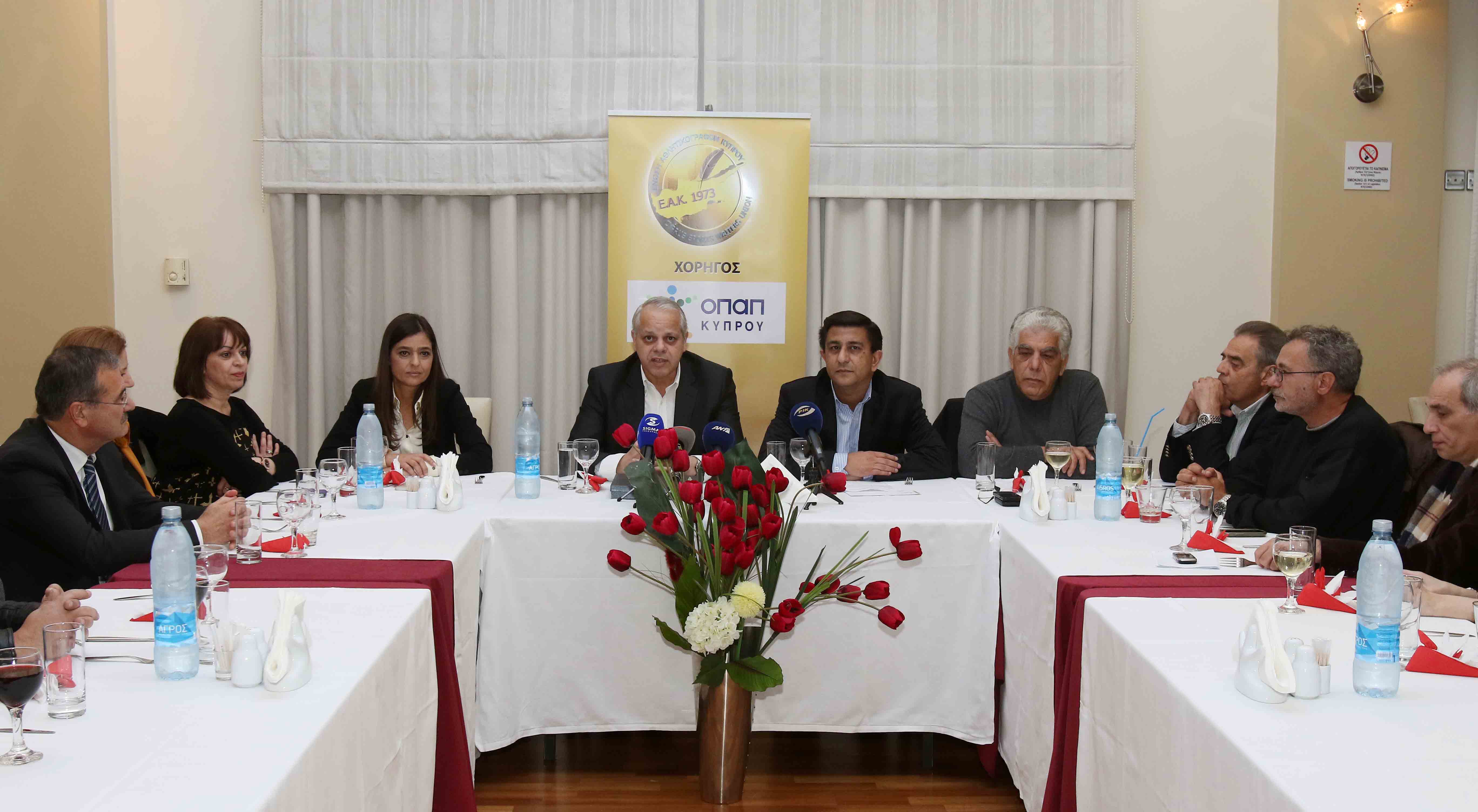 H Ένωση Αθλητικογράφων Κύπρου εξέφρασε τις θερμές ευχαριστίες της στην ΑΕ ΟΠΑΠ Κύπρου για τη μακρόχρονη και σταθερή στήριξή της στην οργάνωση των αθλητικών συντακτών. Σε συνέντευξη Τύπου ο πρόεδρος της ΕΑΚ Παναγιώτης Φελλούκας τόνισε ότι ο ΟΠΑΠ από το 1993 είναι χορηγός της οργάνωσης αλλά και αιμοδότης του κυπριακού αθλητισμού από το 1969.