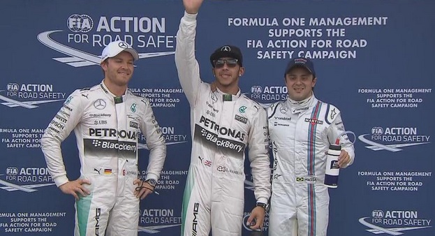 Ο Λιούις Χάμιλτον πήρε την πρώτη pole position της σεζόν και θα εκκινήσει από θέση ισχύος στο Grand Prix της Μελβούρνης την υπεράσπιση του τίτλου του. Ρόσμπεργκ και Μάσα ακολούθησαν.