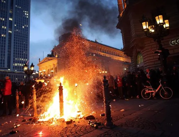 Όλοι γνώριζαν πως τα εγκαίνια του νέου Πύργου της ΕΚΤ στη Φρανκφούρτη δεν θα γίνονταν στο απολύτως αρμονικό κλίμα που θα επικρατούσε στην επίσημη τελετή, περιμένοντας την ηχηρή αλλά και ειρηνική συγκέντρωση διαμαρτυρίας του κινήματος Blockupy, όπου θα μπλέκονταν αντικαπιταλιστικά συνθήματα με φωνές εναντίον της λιτότητας. Όμως τα επεισόδια που ξεκίνησαν με το ξημέρωμα, και για τα οποία δεν ευθύνονται οι ειρηνικοί διαδηλωτές του Blockupy, αμαύρωσαν τη συγκέντρωση και έχουν σοκάρει τη χώρα - η οποία πλέον αναρωτιέται τι συνέβη και ζητά ευθύνη από το κίνημα. Οι εικόνες με τους καπνούς στον ορίζοντα της Φρανκφούρτης, τις συγκρούσεις πάνω από τον Μάιν και τον πετροπόλεμο με τους πάνοπλους αστυνομικούς, είναι κάτι που η Γερμανία δεν έχει συνηθίσει. Ούτε και το Blockupy - ομπρέλα αριστερών κινημάτων που ξεκινούν από κόμματα και φτάνουν μέχρι διάφορες οργανώσεις βάσης.