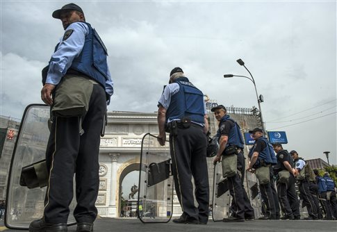 Οι δρόμοι γύρω από το κοινοβούλιο είναι αποκλεισμένοι από ισχυρή αστυνομική δύναμη, ενώ στην κεντρική πλατεία των Σκοπίων τα καφέ και τα εστιατόρια είναι γεμάτα με κόσμο, που φαίνεται να απολαμβάνουν το ηλιόλουστο μεσημέρι.