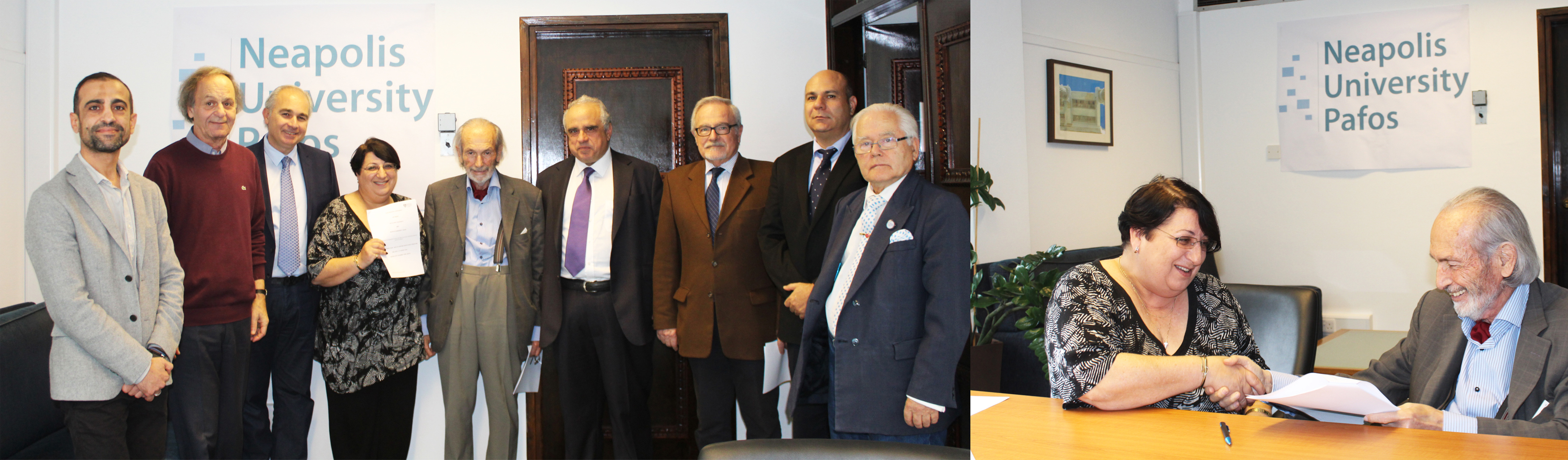 Το Πανεπιστήμιο Νεάπολις Πάφου ανακοινώνει την επίσημη έναρξη της συνεργασίας του με το Πανεπιστήμιο Middlesex του Λονδίνου. Η υπογραφή της συμφωνίας έγινε μεταξύ του κ. Μιχαήλ Λεπτού, Προέδρου του Διοικητικού Συμβουλίου του Πανεπιστημίου Νεάπολις, και της κ. Άννας Κυπριανού, Pro Vice-Chancellor and Executive Dean του Πανεπιστημίου Middlesex.