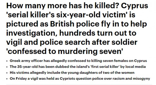 DailyMail: Πόσες ακόμη σκότωσε; Βρετανική Αστυνομία πηγαίνει στην Κύπρο για να βοηθήσει στις έρευνες, συνεχίζονται οι έρευνες μετά την ομολογία του στρατιωτικού για διάπραξη επτά δολοφονιών