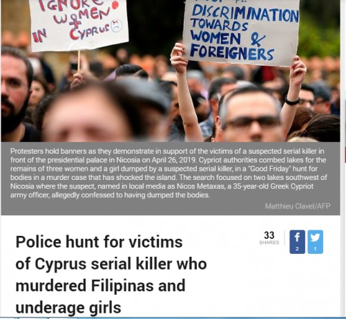 Philstar: Η Αστυνομία ψάχνει για τα θύματα του μανιακού δολοφόνου της Κύπρου, ο οποίος δολοφόνησε Φιλιππινέζες και ανήλικα κορίτσια