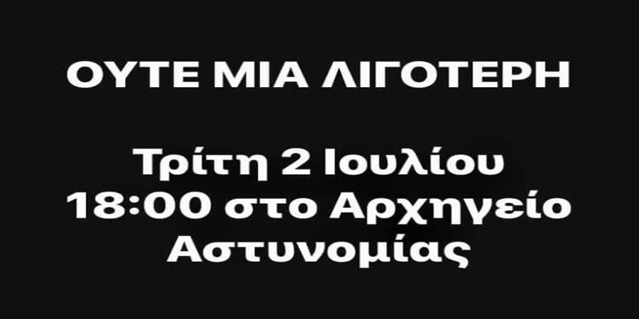 Εκδήλωση διαμαρτυρίας με τίτλο «Ούτε μια λιγότερη» πραγματοποιείται στις 6 αύριο το απόγευμα έξω από το Αρχηγείο Αστυνομίας, με αφορμή την δολοφονία της 26χρονης Σοφίας Ζήνωνος από τον πρώην σύντροφό της.