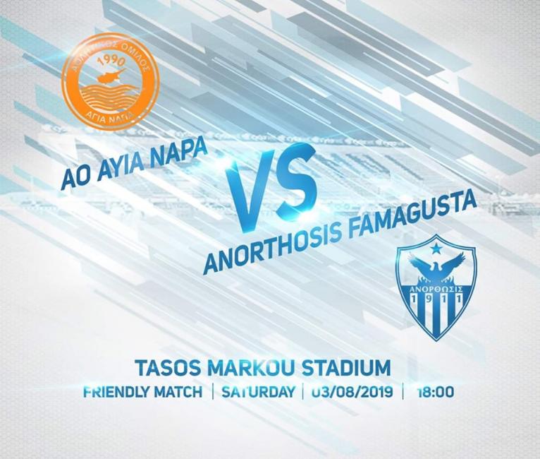 Φιλικό αγώνα με την Αγία Νάπα θα δώσει η Ανόρθωση Αμμοχώστου.Το ματς θα διεξαχθεί στο Τάσος Μάρκου και θα γίνει χωρίς τη κάρτα φιλάθλου.