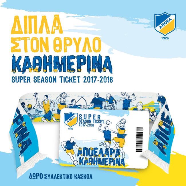 Mε μόλις 50€ εκτός από το Super Season και το συλλεκτικό κασκόλ εξασφαλίζεται και 100 βαθμούς για το APOEL FC Loyalty/Membership Scheme pic.twitter.com/vaFWiYmA3c