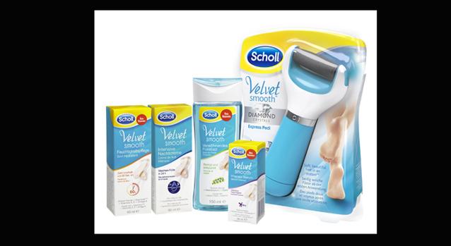 Η σειρά περιλαμβάνει εξειδικευμένα προϊόντα για την περιποίηση των ποδιών τα οποία μπορούν να χρησιμοποιηθούν τόσο απευθείας από τους καταναλωτές όσο και από επαγγελματίες πεντικιουρίστες.Scholl Velvet από Βάσσο Ηλιάδη και Reckitt Benckiser